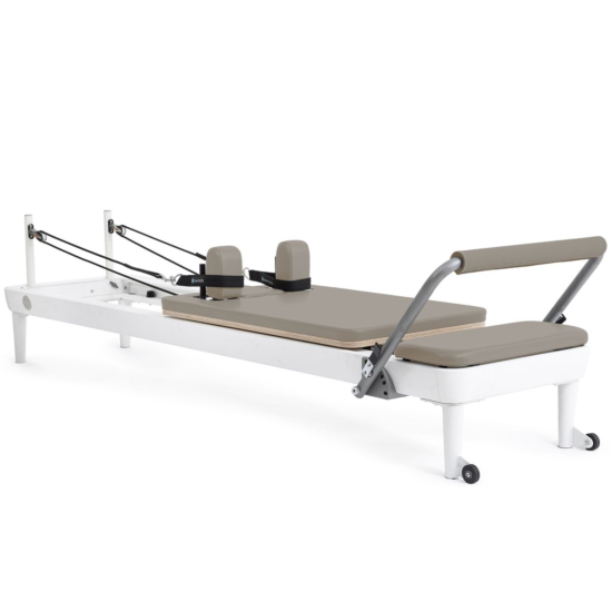 Elina Reformer Nubium fra Elina Pilates er utviklet for profesjonelle studioer og er et ideelt valg for deg som ønsker en robust, stillegående og plassbesparende reformer av høy kvalitet. Den elegante konstruksjonen i hvit aluminium gir en stabil og trygg treningsopplevelse, mens den ekstra myke og ultra-stille vognen med åtte hjul og presisjonslagre sikrer jevn bevegelse uten forstyrrelser. Takket være funksjonen for vertikal oppbevaring kan Nubium enkelt settes i oppreist posisjon, noe som gjør den godt egnet også for mindre rom – uten å gå på kompromiss med funksjonalitet eller komfort.