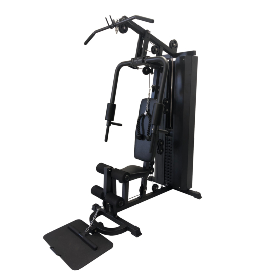 TITAN LIFE Home Gym ll er en multimaskin som gir deg muligheten til å trene alle muskelgrupper hjemme. Maskinen er funksjonell og gir en variert trening der du kan fokusere på spesifikke muskelgrupper, enten det er overkropp, ben eller armer. Den er utstyrt med kjedetrekk på flere steder, slik at du kan bruke ønsket håndtak. Maskinen har et 75 kg vektmagasin, hvor hver vektplate måler 38 x 18 x 4 cm og veier 5 kg per plate.